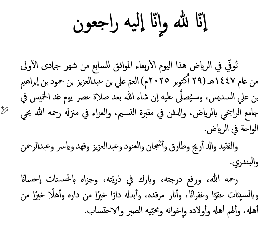 | (المتزوّج أحد رجالها بنساء من أسرة السديس) | ||